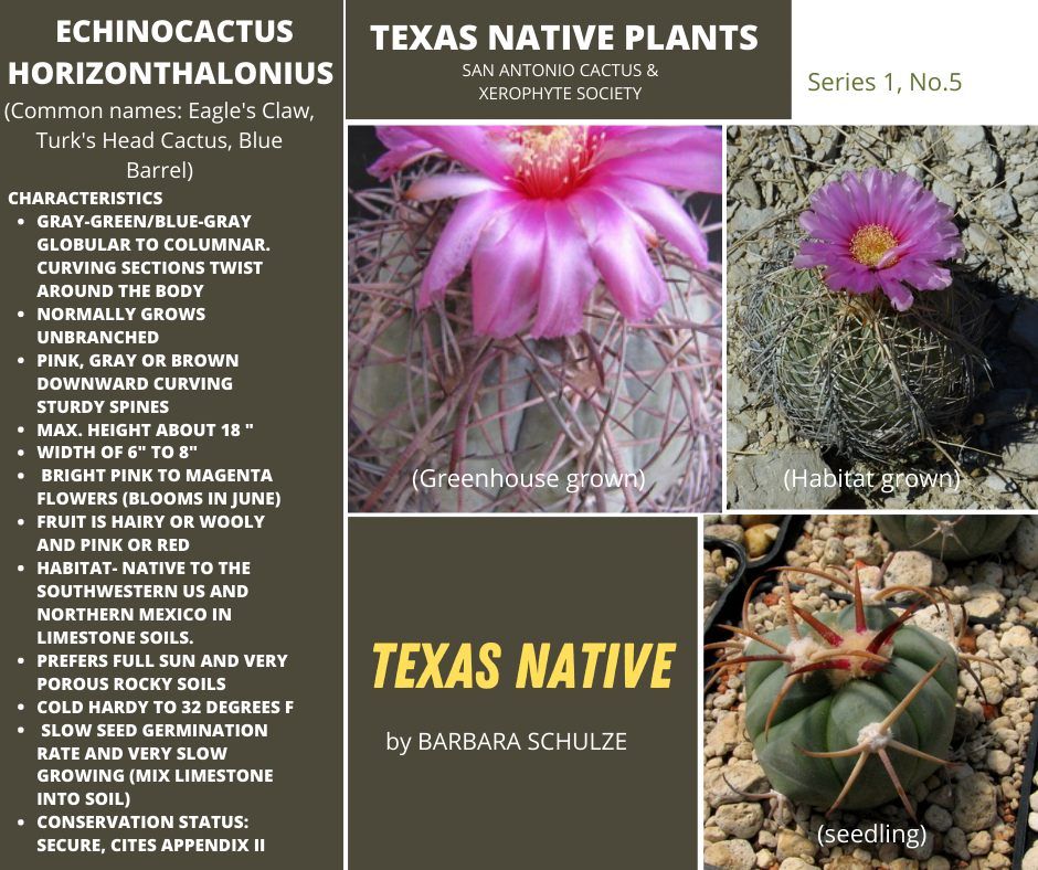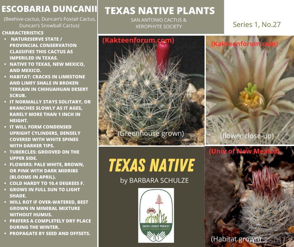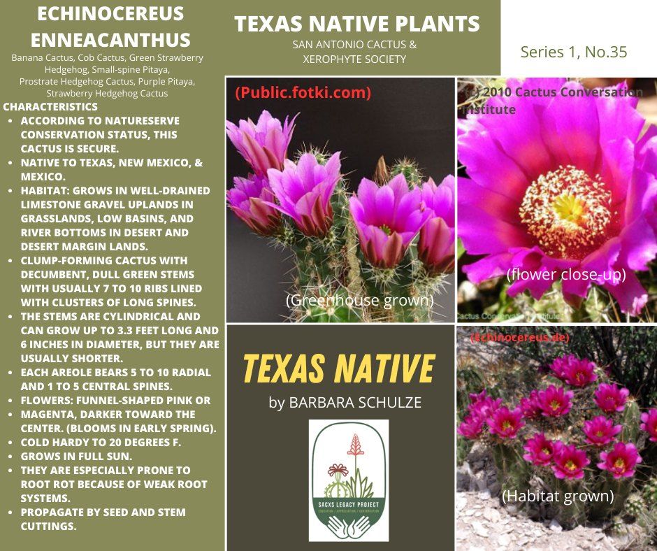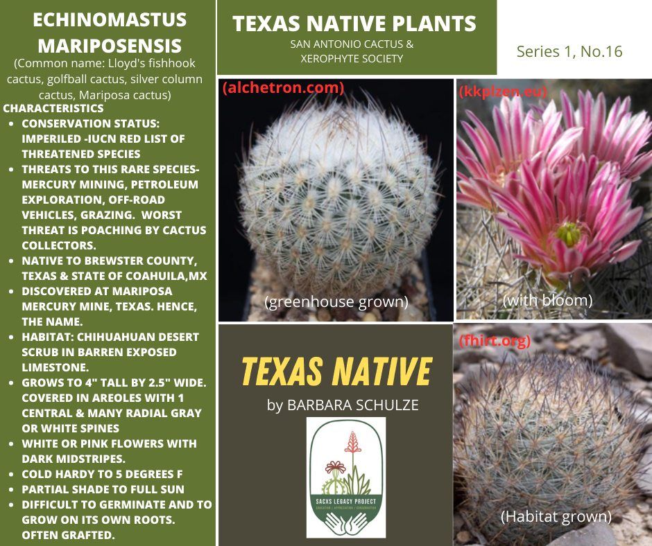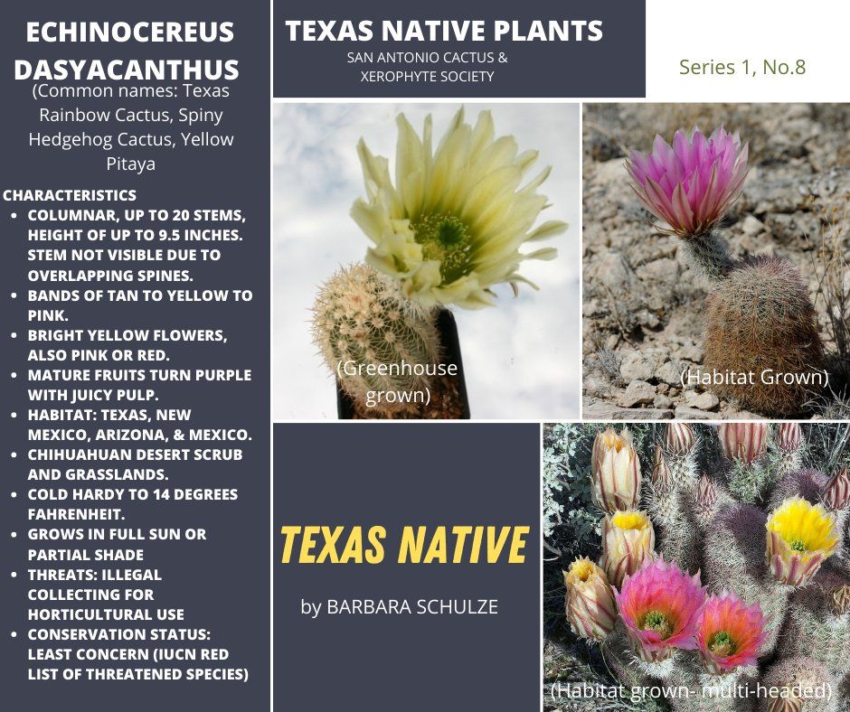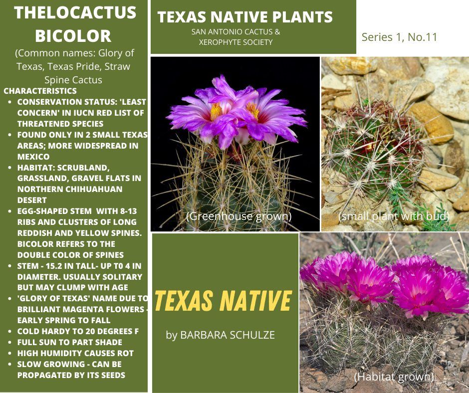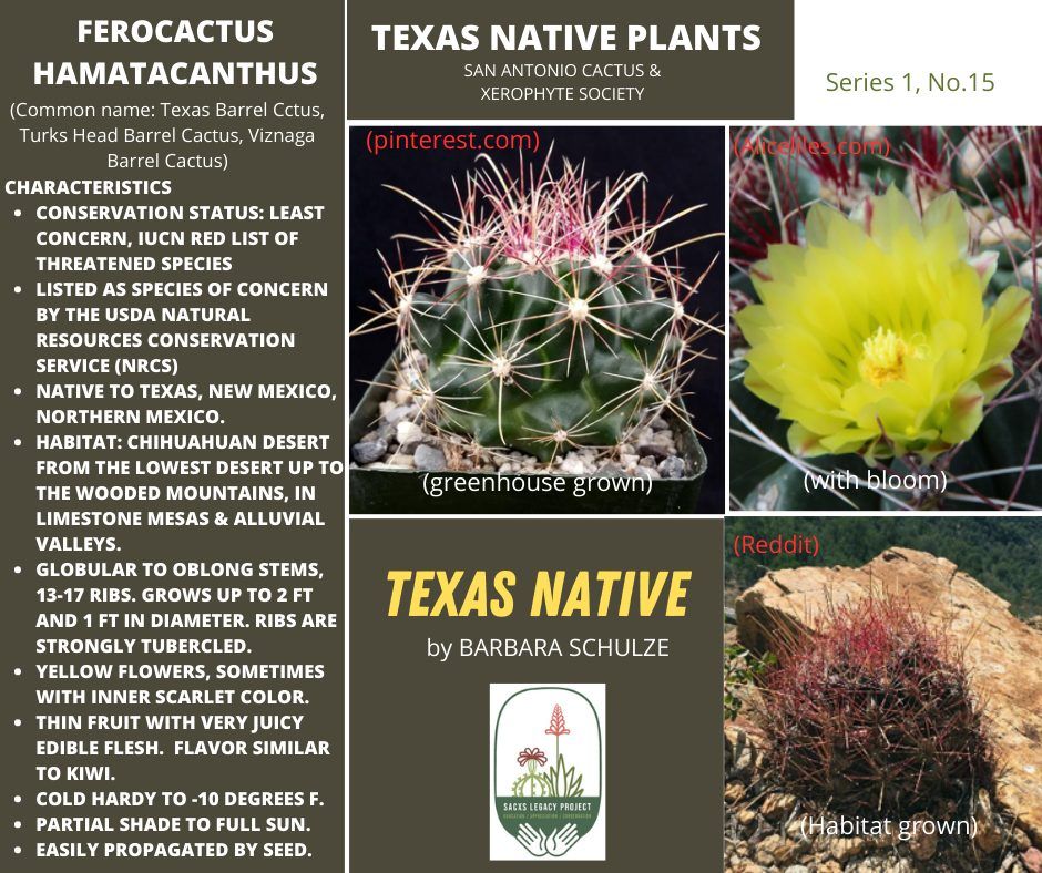 The Texas Native Series is meant to highlight the stated goals of SACXS and the Legacy Project. "The first step is knowing the native xerophytes in our states. It All Begins with the Natives".